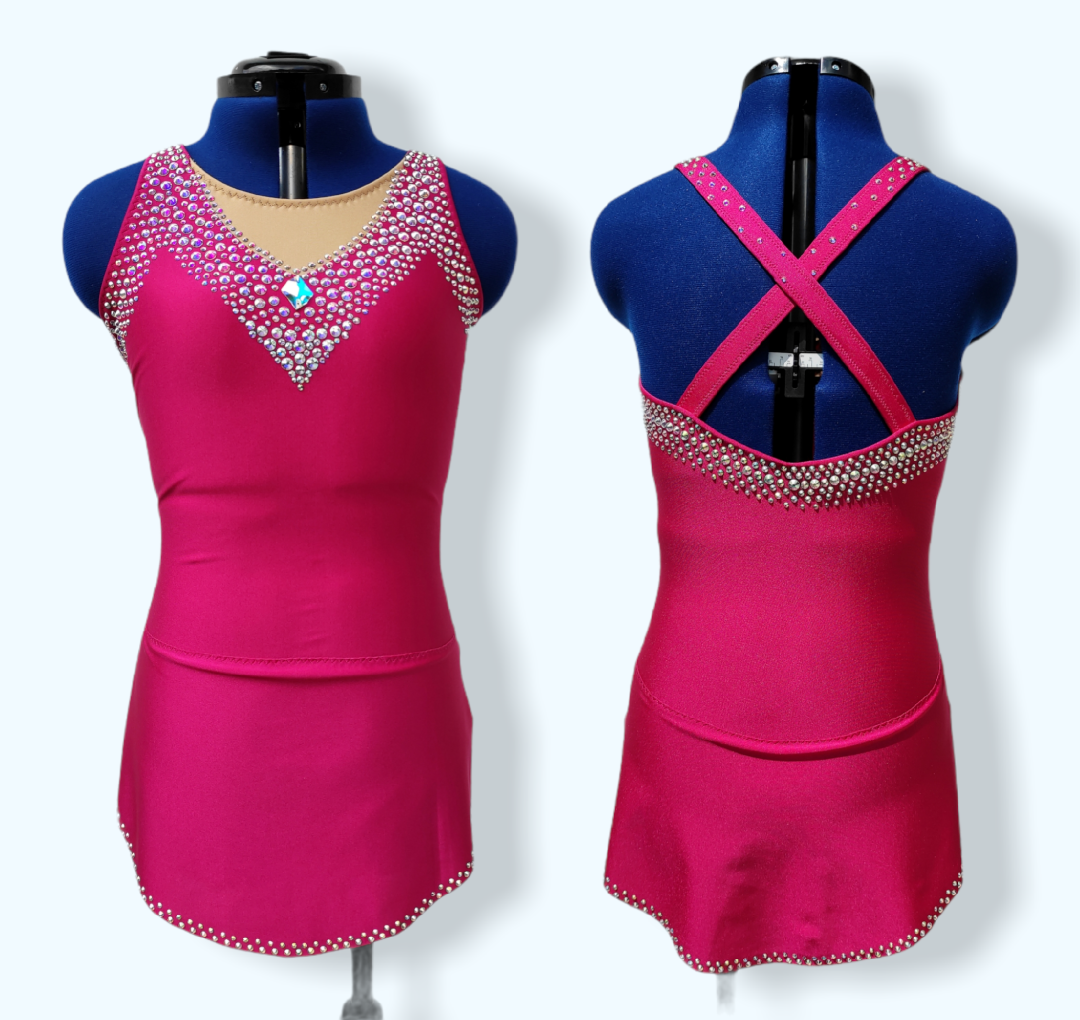 Dieses Kleid ist aus rotem Lycra (bielastisch) genäht und mit dehnbaren Trägern versehen. Das Kleid glitzert mit mehr als 1210 Crystal AB Strasssteinen und ist reine Handarbeit.