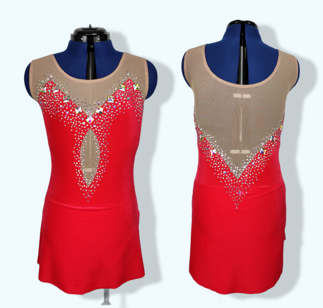Dieses Kleid ist aus bielastischem Samt und Netzstoff gefertigt und mit über 1250 Strasssteinen und 17 Aufnähsteinen besetzt. Das Kostüm ist ein Einzelstück und hangenäht.